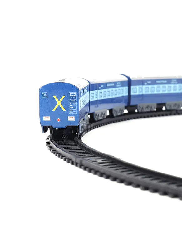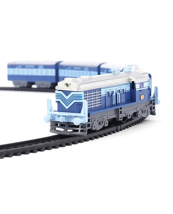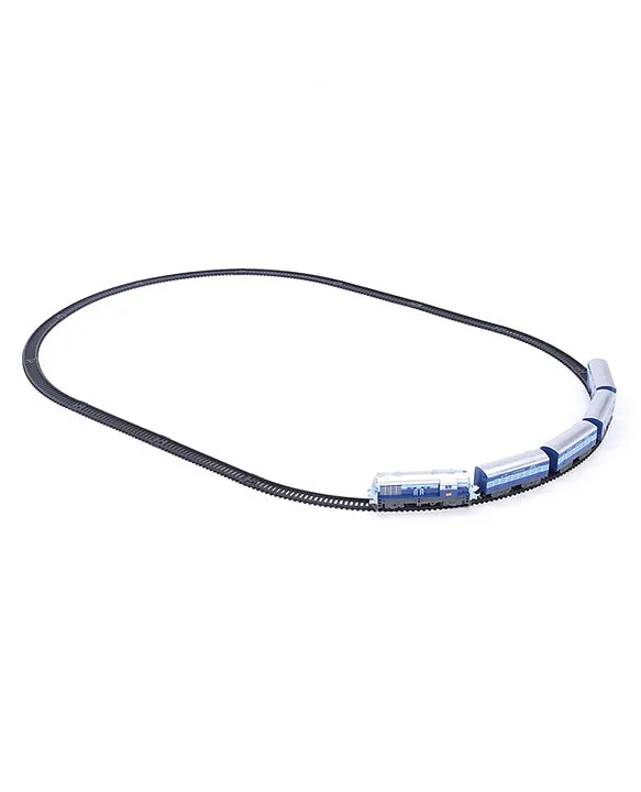 The Centy Indian Passenger Train (Blue) is a beautifully designed toy train featuring excellent body graphics and a glowing front headlight. This set includes one engine and four coaches, making it a perfect combination of fun and realism. Available in two track lengths with a perimeter of 203 cm and 275 cm, it provides an exciting and engaging experience for kids and collectors alike. Whether used as a playset or a souvenir, this Centy passenger toy train is a great addition to any train enthusiast's collection.