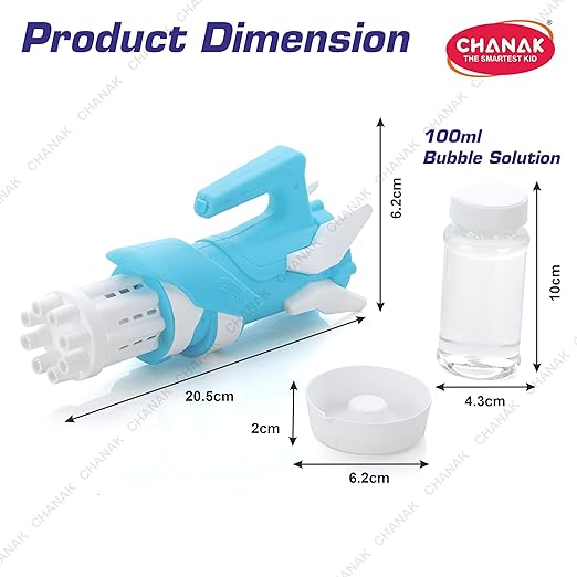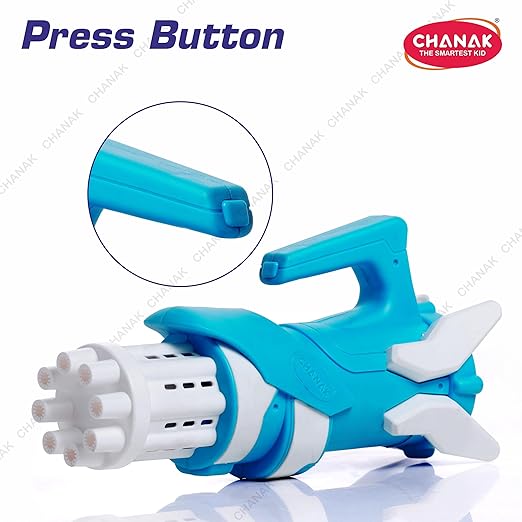- Chanak Gatling bubble gun comes with 8 nozzles to blow out hundreds of colourful bubbles per minute. Dip the nozzle into the bubble solution and pull the trigger and hundreds of bubbles will come out.