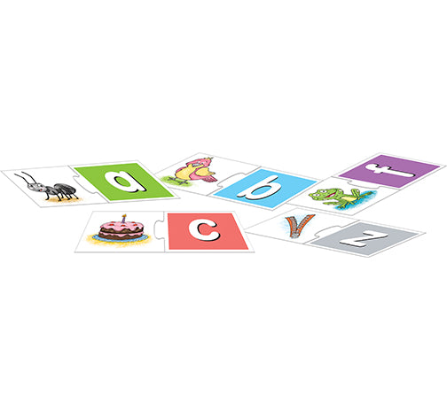 This colourful educational puzzle uses the “play and learn” technique to help the child in identifying and recognizing the small letters of the alphabet. Each two-piece puzzle has the letter on the right-hand piece with the object starting with that letter on the left-hand piece. The child has to match the letter with the corresponding object. The puzzle pieces are self-correcting, meaning that only the correct pieces will fit properly with each other. This ensures that the child learns the concept correctly.