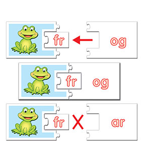 This colourful educational puzzle uses the “play and learn” technique to develop the vocabulary of children. Each puzzle set consists of a picture piece, a piece with the first two letters of the word, and a piece with the rest of the word. The child has to first fix the correct 2-letter piece to the picture piece and then find the piece which will connect to both the picture and the 2-letter pieces, and complete the word. For further play, the child can use just the letter pieces to make words and verify if they are correct by using a dictionary.