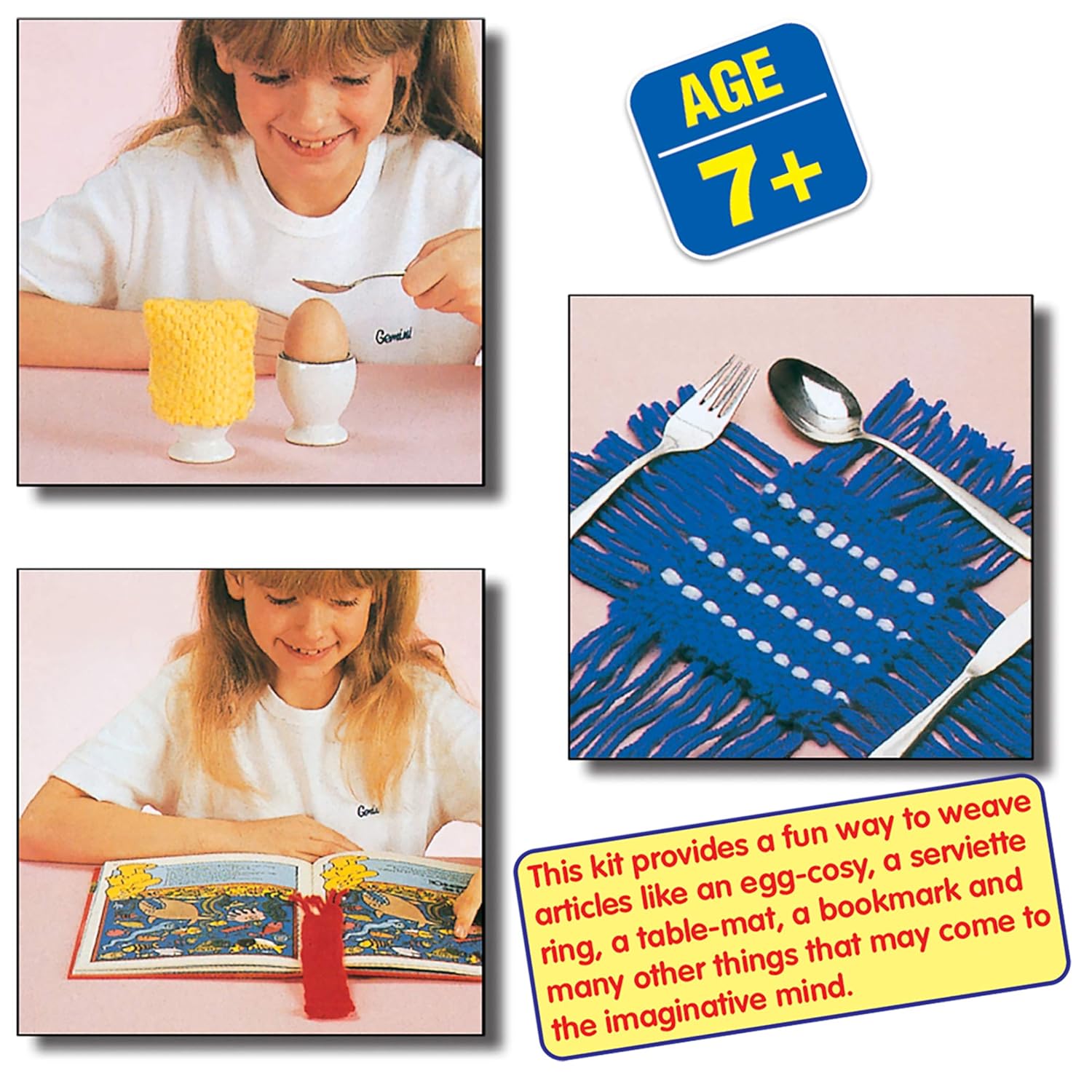 Let Your Little One Weave Her Imagination into Creative Patterns Watch your child's imagination come to life as they create delightful craft work with the Frank Weaving Loom. It's a great way to inspire children, develop their craft skills at an early age and instil a sense of pride in handmade creations. This loom is more than just a fun pastime, as it is also an educational toy for kids, which helps improve their motor skills, eye-hand coordination and dexterity. Their finished projects can be displayed at home or even gifted to friends, teachers, parents and grandparents as treasured keepsakes! Help Kids Enhance Their Motor Skills, Dexterity and Patience! Designed to spark creativity and keep kids entertained for hours, this weaving loom by Frank is the perfect gift for a budding craft enthusiast. It includes materials and instructions for fun projects like egg cosies, serviette rings, table mats, bookmarks and more. With the included 60g of double-knit yarn in attractive colours, youngsters can create items that they will treasure for years to come. This weaving loom for kids will also help them develop other virtues, as they learn to work on projects using spatial reasoning, concentration and patience.