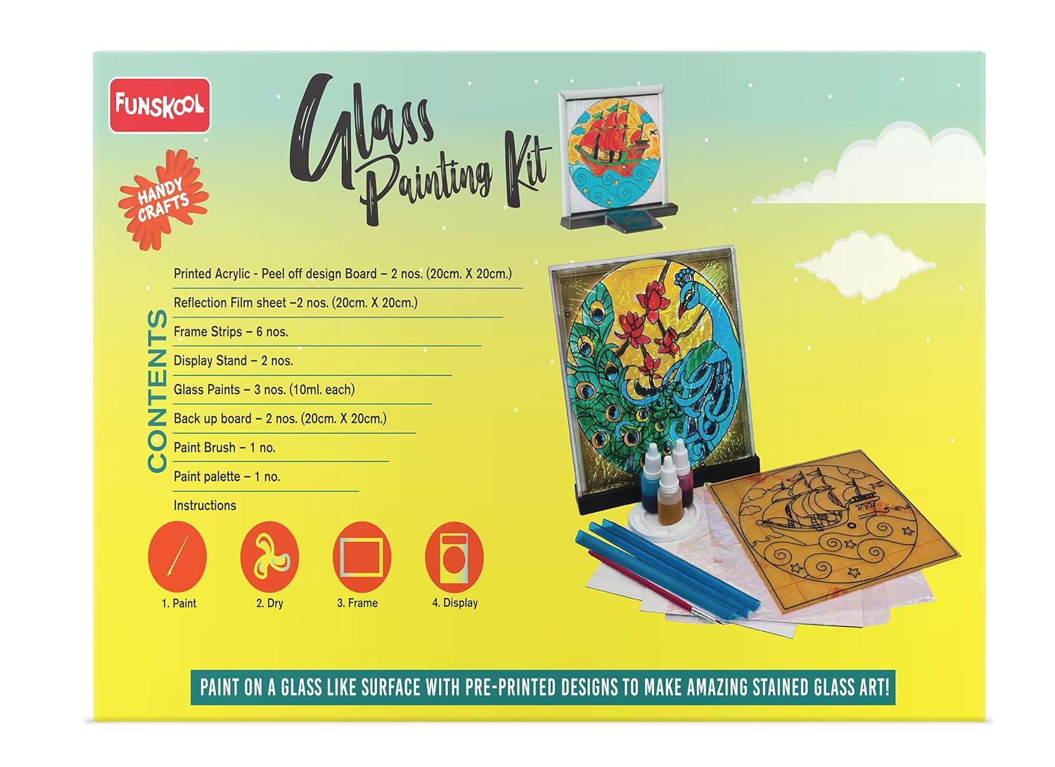 Help your child develop creative art skills with this glass frame painting set. The set enables kids to imagine and explore. It lets them create stunning effects of stained glass art.