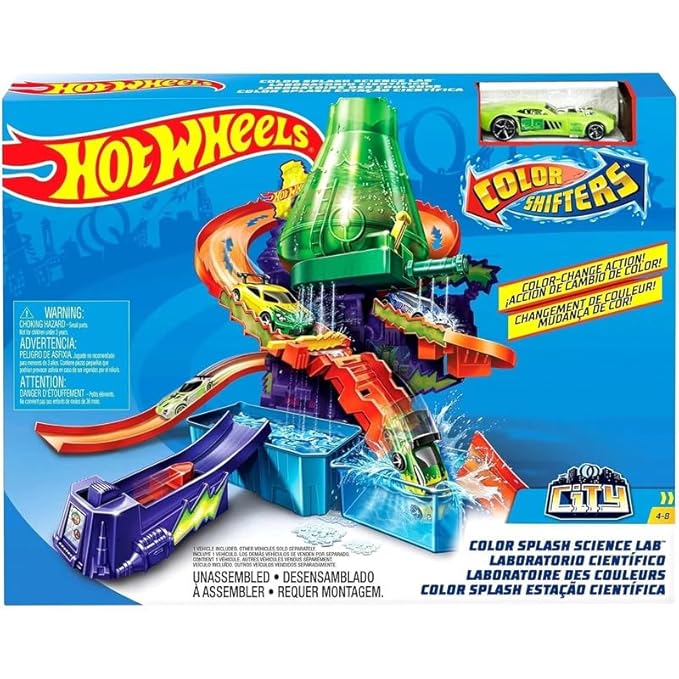 The Hot Wheels Metal Shifters Color Splash Science Lab Playset is an exciting and interactive toy that invites children aged 4 years and above to explore the world of color-changing cars. With its science lab theme and water-based activities, this multicolor playset sparks imagination and introduces children to basic scientific concepts.