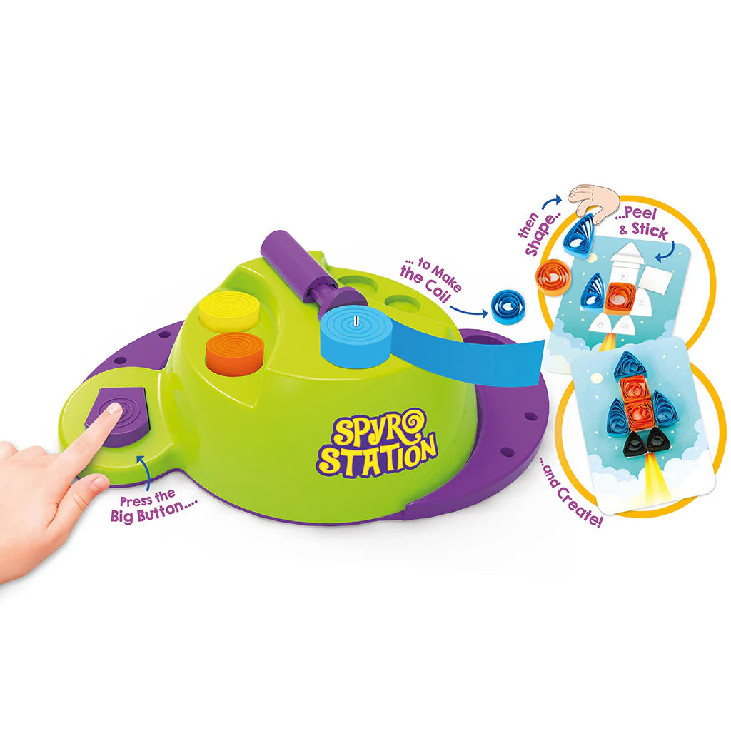 - NEWEST CRAFT TOOL: Spyro Station – Motorized coiling station with easy to use size guide is designed to make it easy peezy for even a 5-year-old to explore the endless possibilities of paper quilling (operates on 3 AA batteries, batteries not included)
