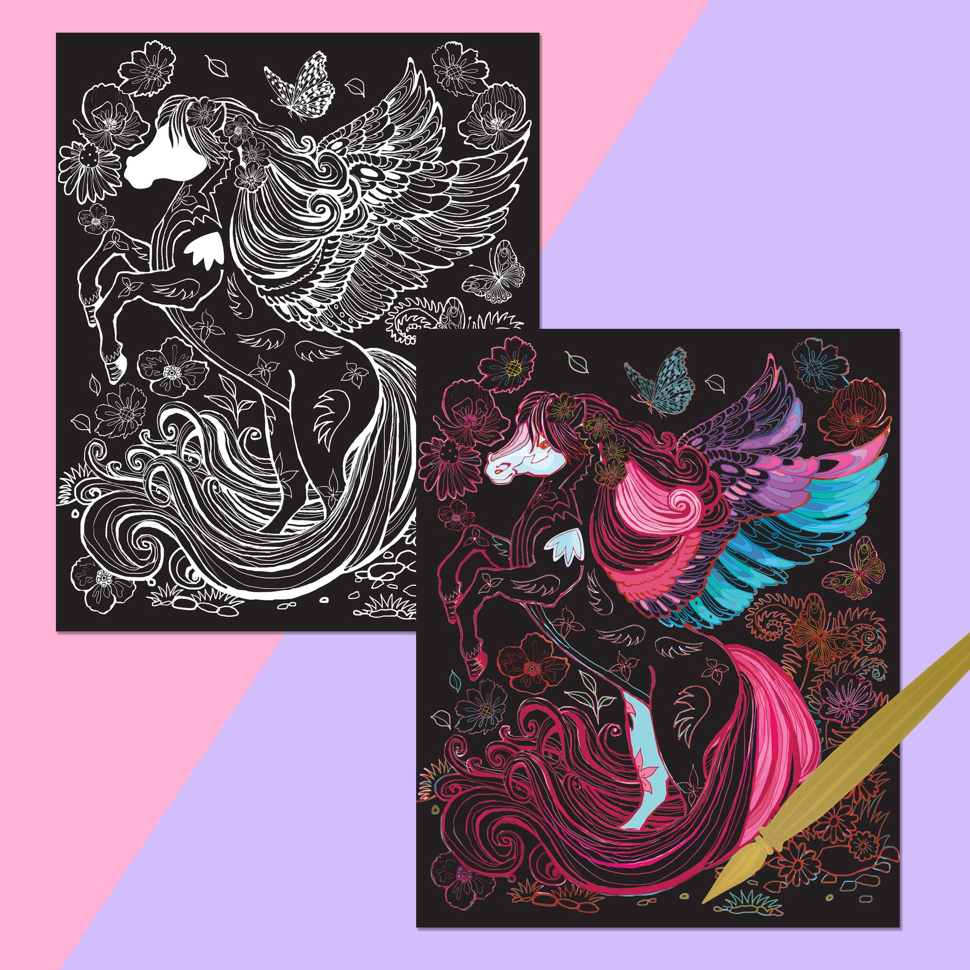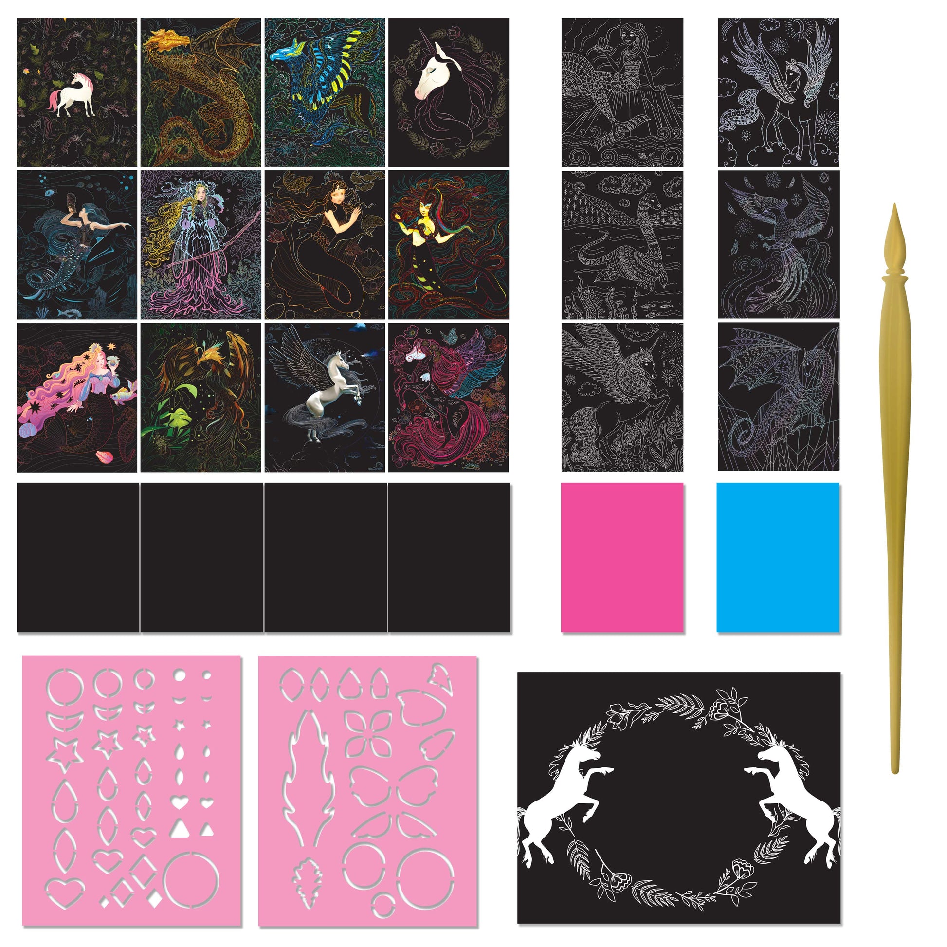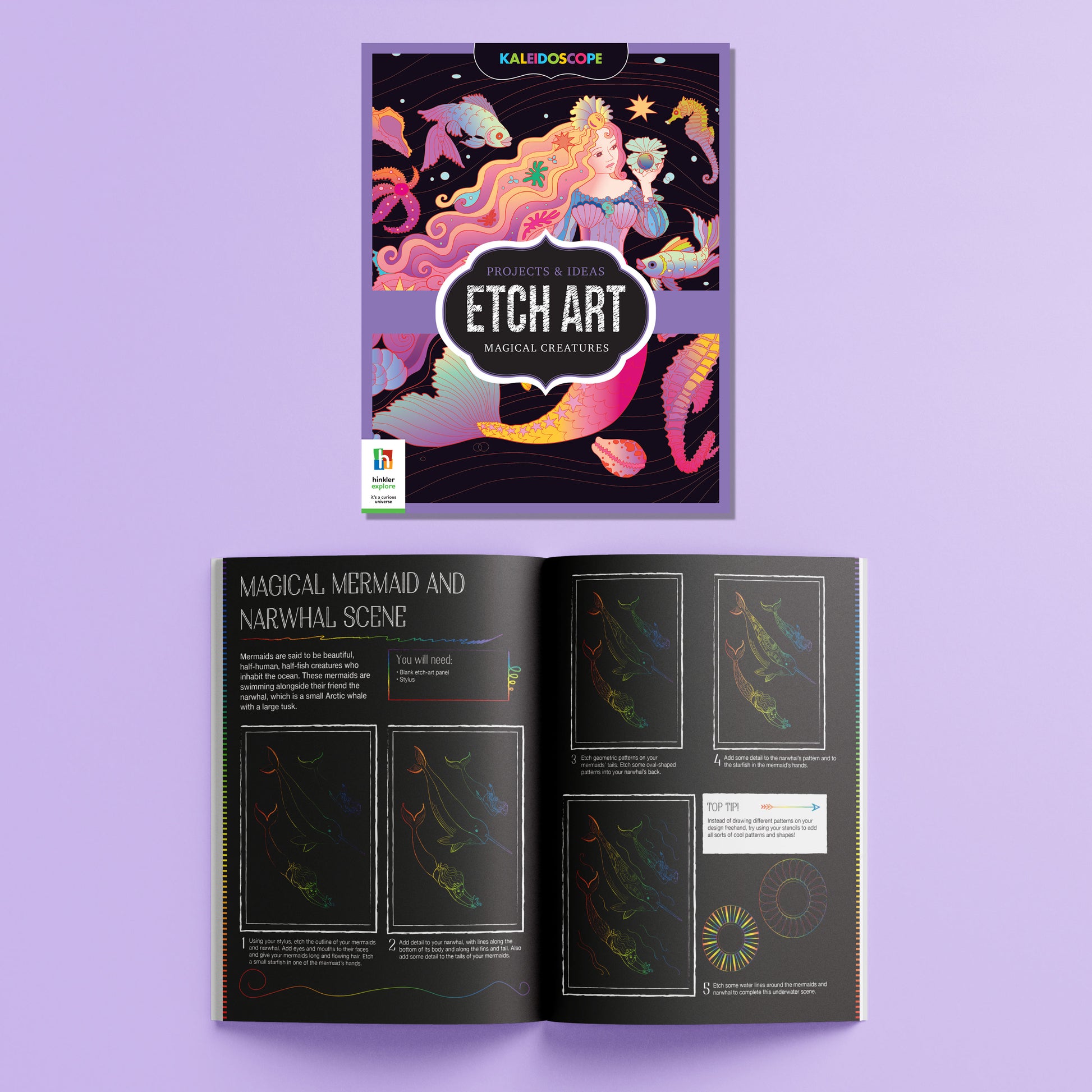 Kaleidoscope: Ultimate Etch Art Magical Creatures is an exciting way to explore your creative side and make fantastic art. Draw on the etch panels with the stylus to uncover the bright art underneath, making your pictures and patterns burst with life!