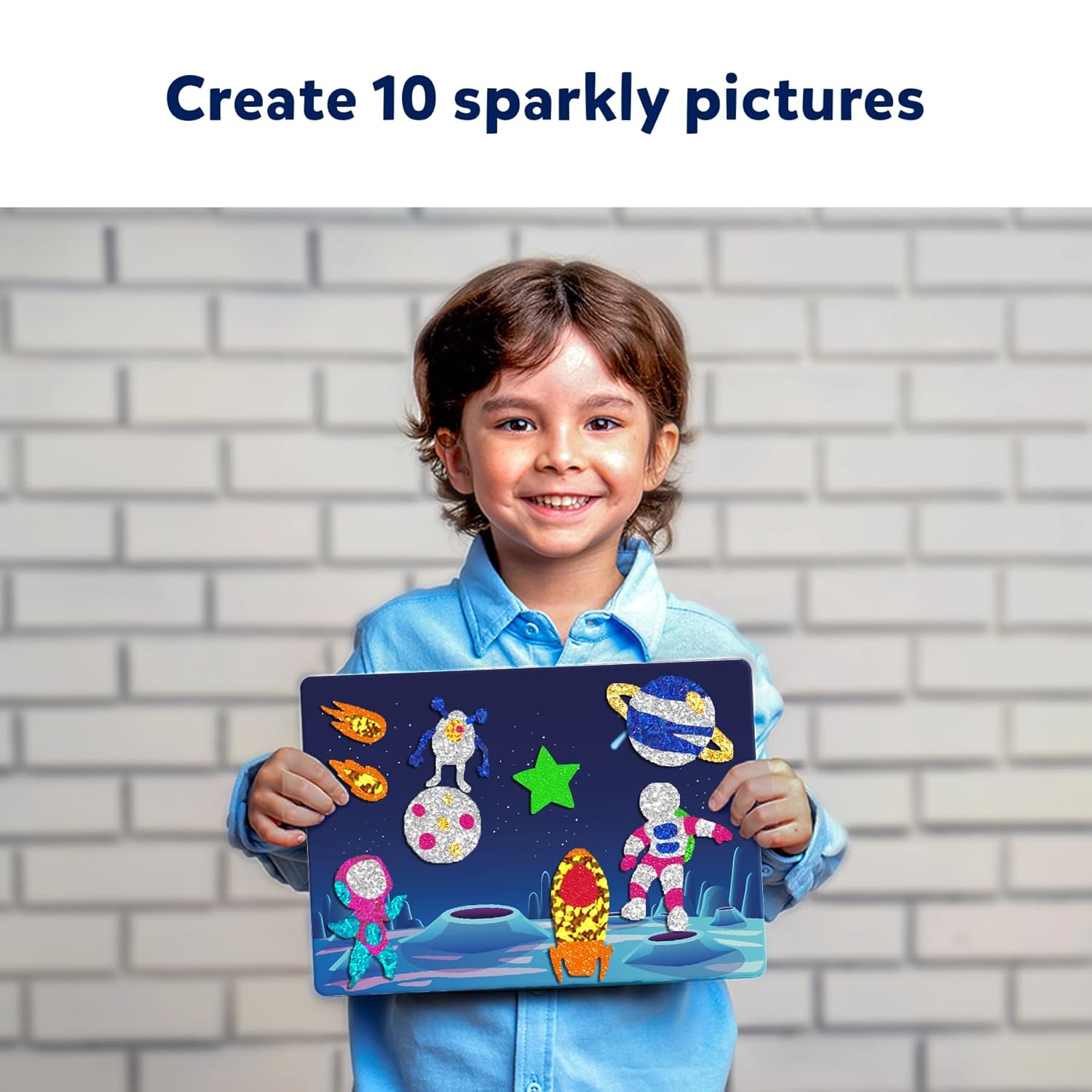 - FOIL ART & CRAFT ACTIVITY: Let your child's imagination soar with this magical, mess-free foil art and craft activity. They can create stunning pictures featuring planets, astronauts, shooting stars, and more, sparking hours of creative play!