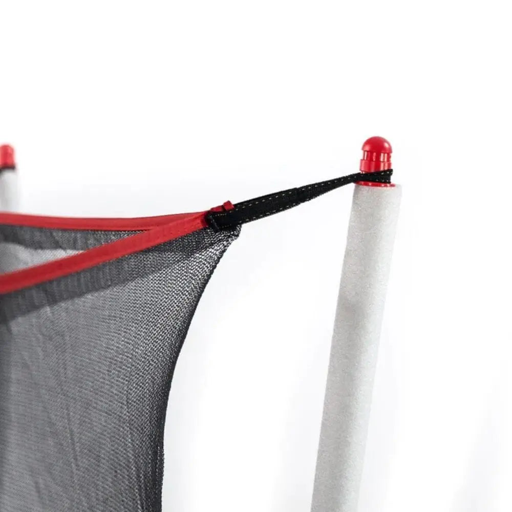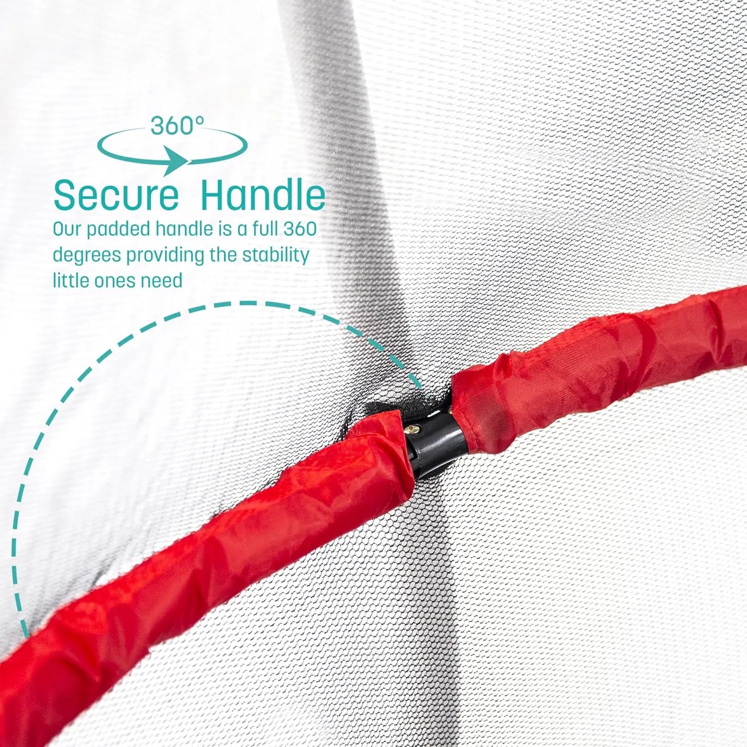 - DESIGN: Mini indoor trampolines are designed with protection in mind. This mini trampoline features 36 stretch bands instead of steel springs, and a soft frame pad covers the stretch bands to prevent any pinch points. A 360-degree padded handlebar offers stability for your little jumper, and the enclosure net is sewn directly to the jump mat, eliminating.