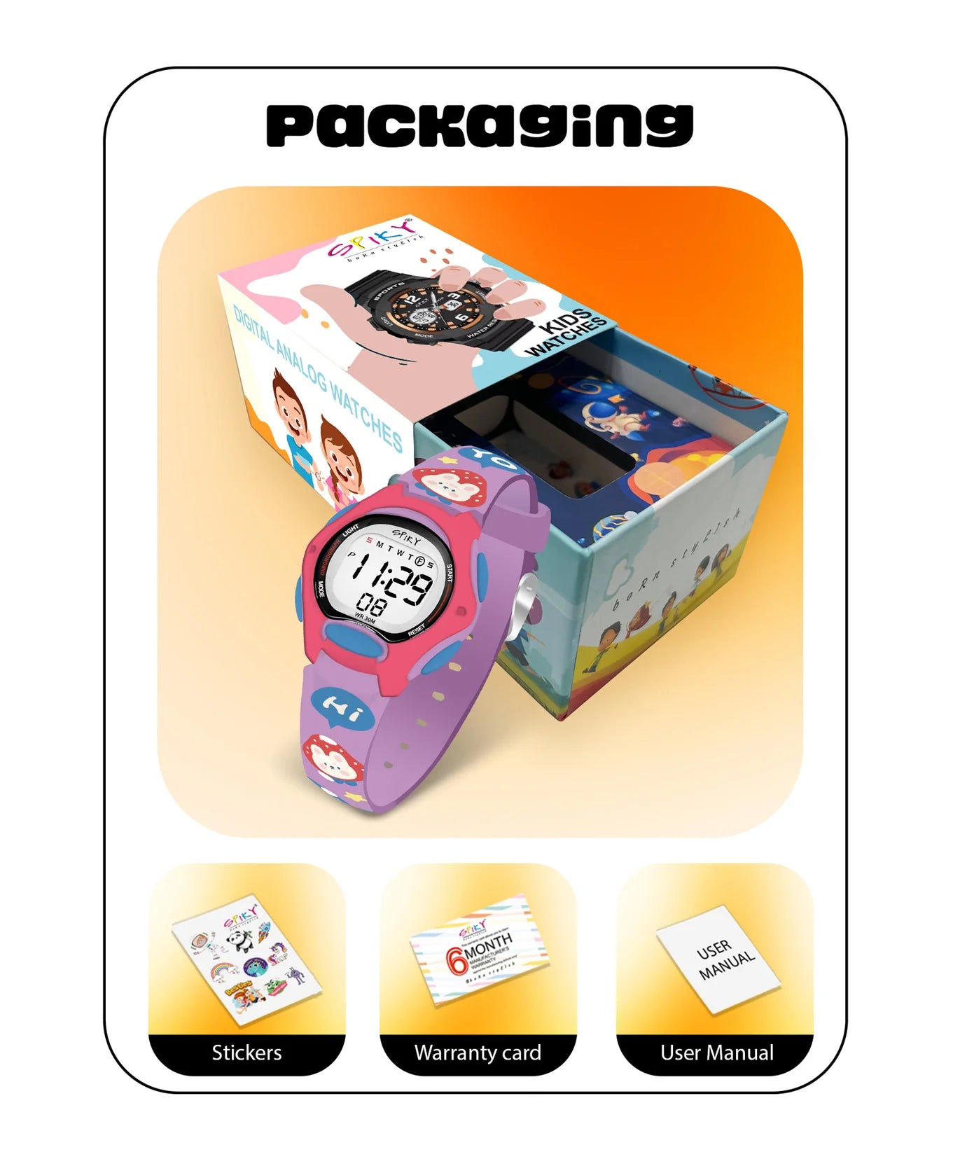 Spiky Printed Strap Round Sports Digital Watch -- EVA18_Purple